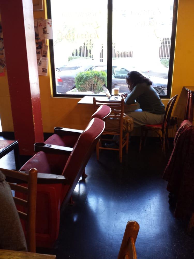 Just moved to the area and this is already becoming a favorite neighborhood spot for when I need to work or read. It's cozy and has a nice ambiance. I always enjoy the background music and the staff is friendly. Food is pretty good and I really like their chai mocha. And the wifi is a huge plus- I've found free wifi can be hard to come by in SF! Don't have anything negative to say about this place.